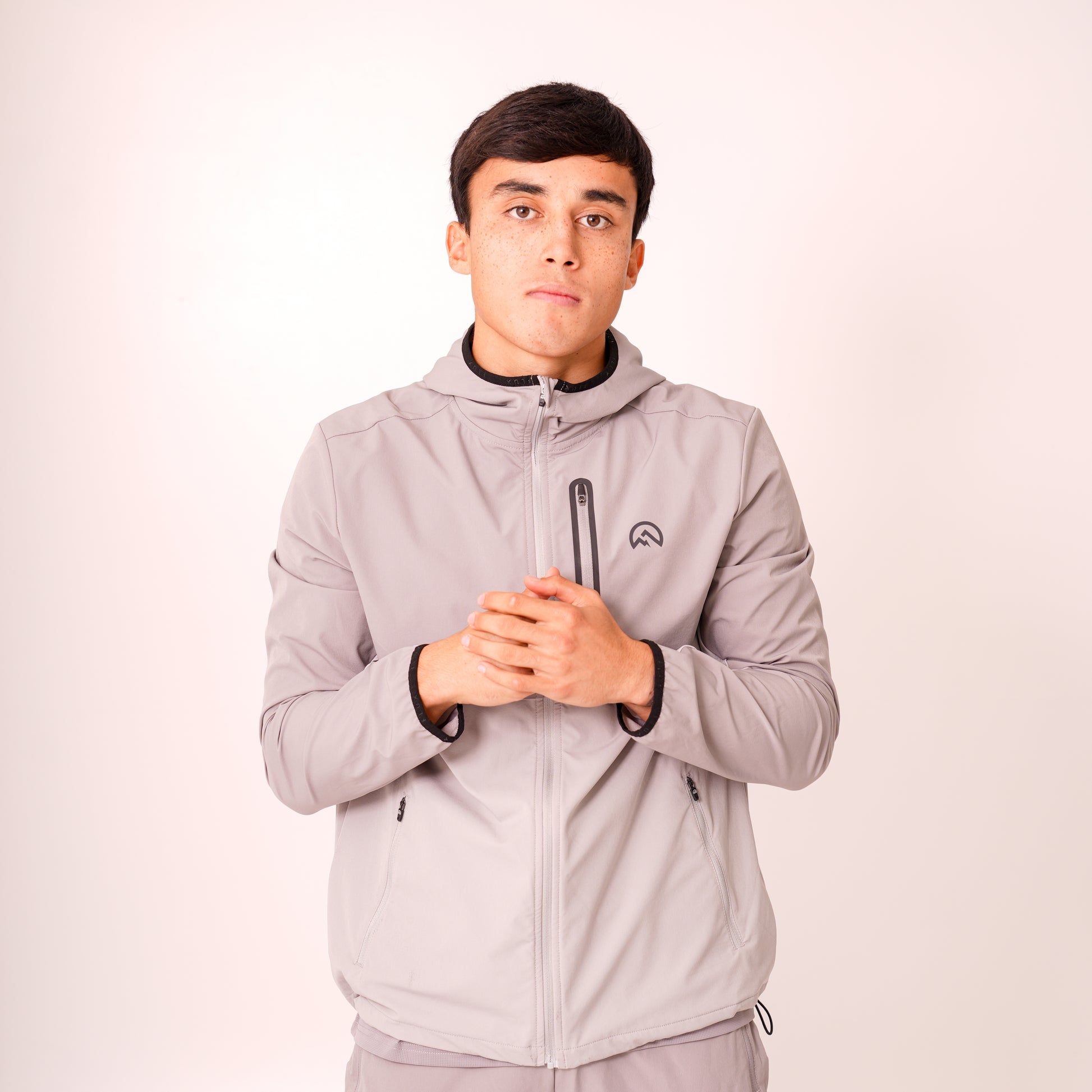 - logo detailing on hood and back